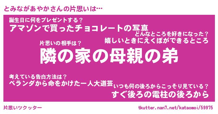 | 胡散臭い通販商品みたいなあだ名 | 『必ず成功するブレスレット…その名も「とみながあやか」』 |