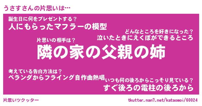 | ヘコむあだ名 | 『うさにゅー』『レバニラ』『うさを』 |