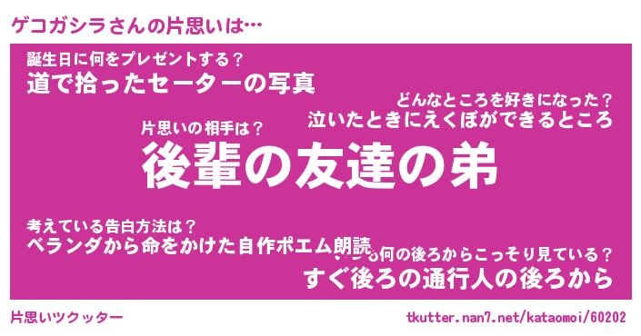 | 自動車の名前っぽいあだ名 | 『ゲコティマ』『ゲクア』『ゲント』 |