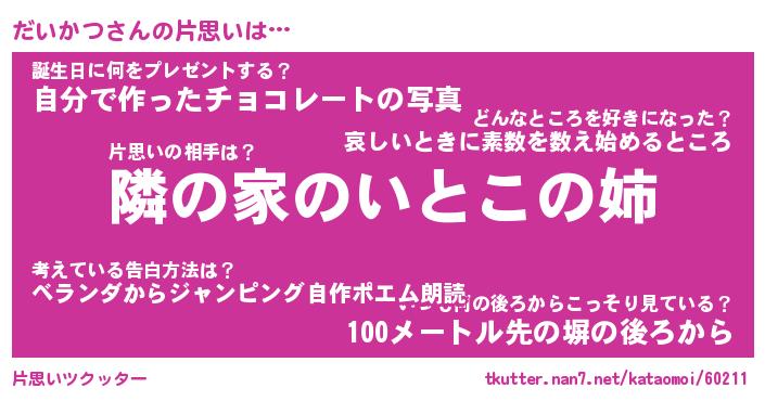 | 胡散臭い通販商品みたいなあだ名 | 『モテモテ間違いなし霊験あらたかなお札…その名も「だいかつ」』 |