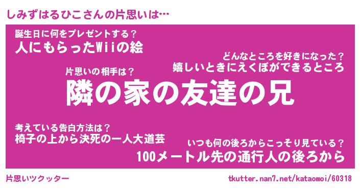 | 伝説のあだ名 | 『伝説のスナイパーしみずはるひこ』 |