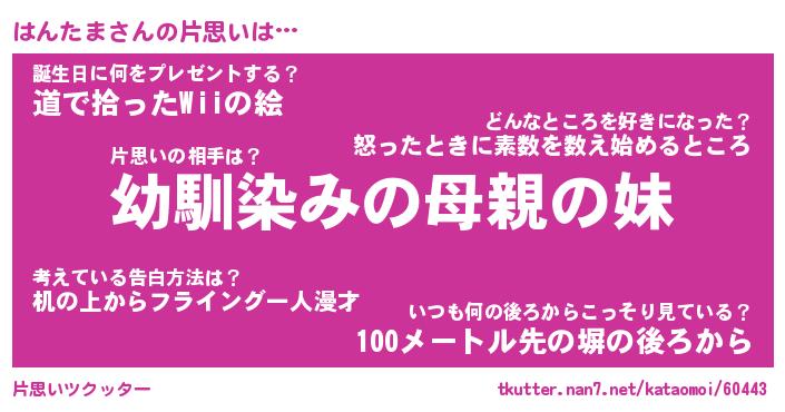 | ヘコむあだ名 | 『はんにー』『豆乳』『はんっぺ』 |