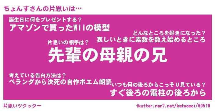 | ツイッター | ちょんすさんのツイッターID『katatsumuri_man』 |