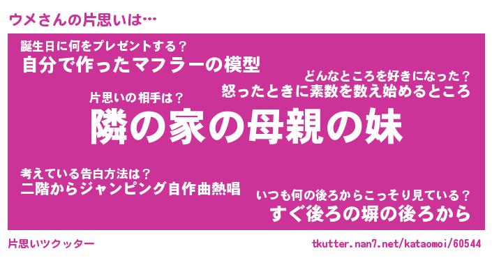 | 男性向けラノベタイトル風あだ名 | 『ウメの憂鬱』 |