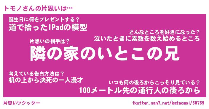 | ヘコむあだ名 | 『トモもー』『つくし』『トモっぺ』 |