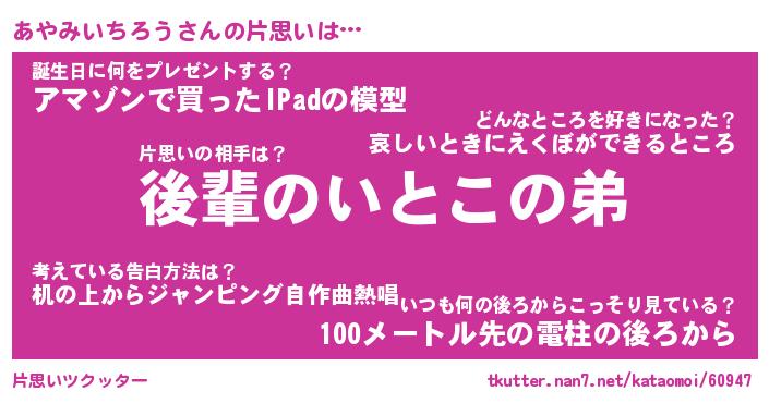 | 胡散臭い通販商品みたいなあだ名 | 『モテモテ間違いなし霊験あらたかなお札…その名も「あやみいちろう」』 |