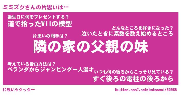 | 胡散臭い通販商品みたいなあだ名 | 『必ず成功する水晶球…その名も「ミミズク」』 |
