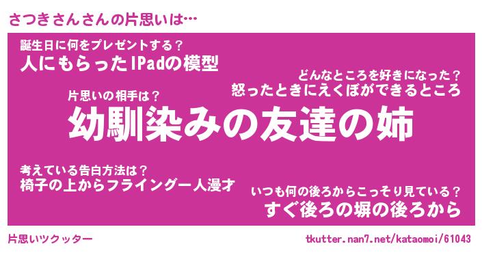 | ヒーロー風カッコイイあだ名 | 『スーパーサツキサン』『天弓騎士サツ』 |