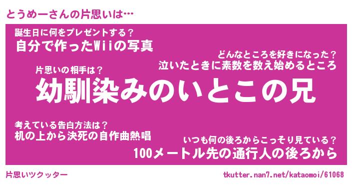 | ヘコむあだ名 | 『とうもー』『豆乳』『とうお』 |