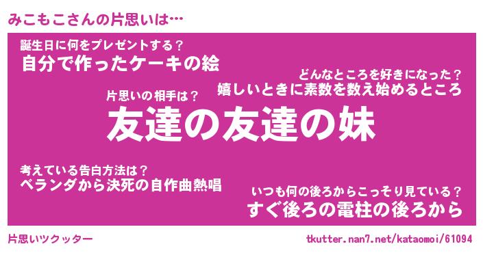 | ヘコむあだ名 | 『みこっふぃ~』『つくし』 |