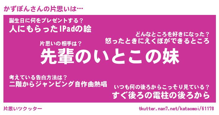 | ヘコむあだ名 | 『かずもー』『なまこ酢』『かずお』 |