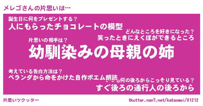 | 男性向けラノベタイトル風あだ名 | 『メレゴの憂鬱』 |