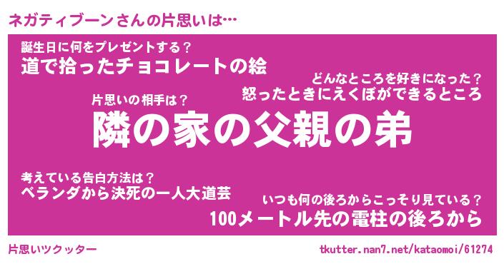 | ポケモン風あだ名 | 『ネガチュウ』『ネガテダネ』 |