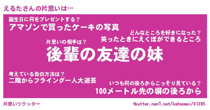 | 意味不明あだ名 | 『ペロリンえるた』『えるたフォーエバー』 |