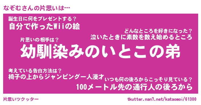 | ヘコむあだ名 | 『なぞにゅー』『つくし』 |