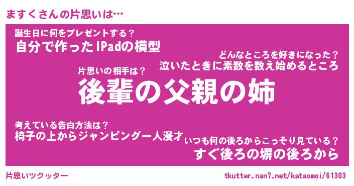 | ヘコむあだ名 | 『ますふぇ~』『牛乳』『ます太郎』 |