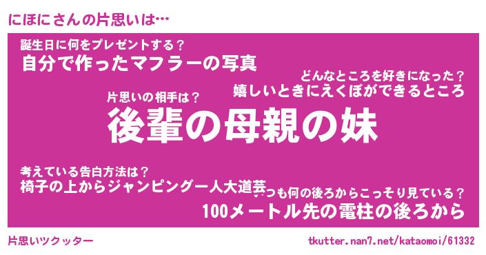| ヘコむあだ名 | 『にほふぇ~』『つくし』 |