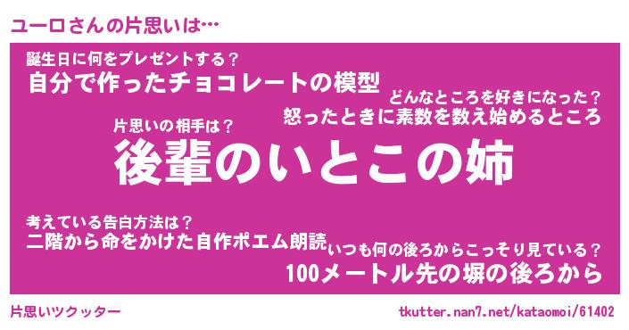 | ヘコむあだ名 | 『ユーもー』『つくし』『ユーぷりん』 |