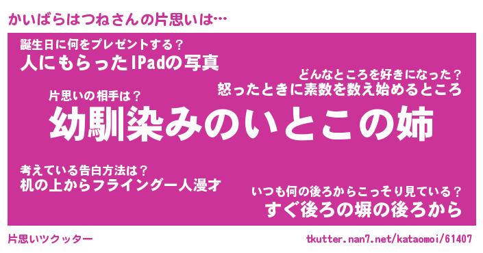 | ヘコむあだ名 | 『かいもー』『つくし』『かいっ子』 |