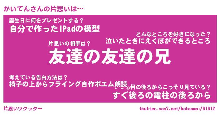 | ヘコむあだ名 | 『かいっふぃ~』『つくし』 |