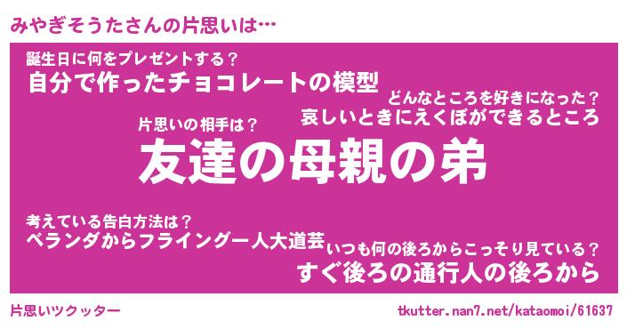 | ヒーロー風カッコイイあだ名 | 『スーパーミヤギソウタ』『黄金騎士ミヤ』 |