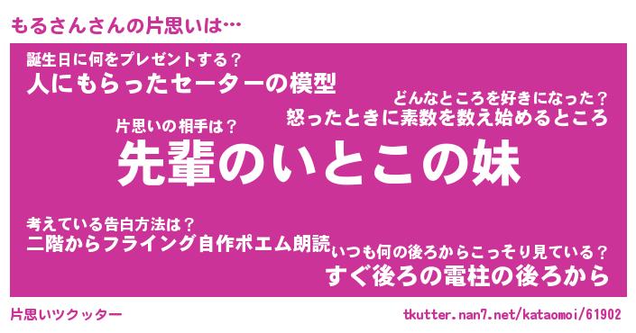 | 男性向けラノベタイトル風あだ名 | 『もるさんの憂鬱』 |