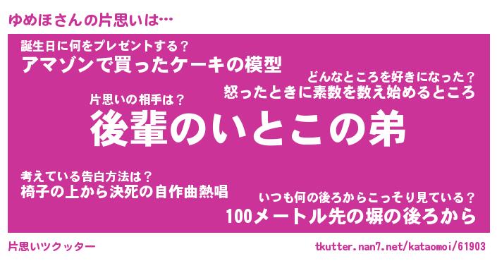| ヘコむあだ名 | 『ゆめもー』『酢こんぶ』『ゆめ太郎』 |