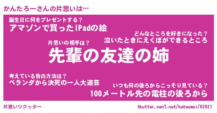 | 胡散臭い通販商品みたいなあだ名 | 『モテモテ間違いなし霊験あらたかなお札…その名も「かんたろー」』 |
