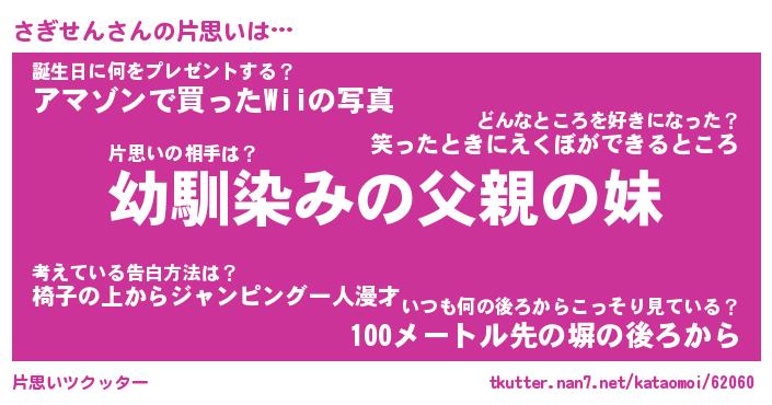 | ヘコむあだ名 | 『さぎにゅー』『なまこ酢』『さぎを』 |