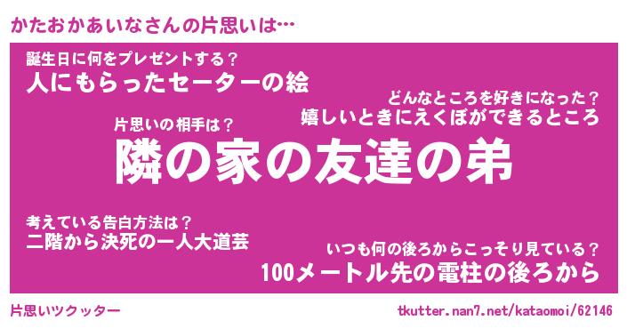 | 胡散臭い通販商品みたいなあだ名 | 『モテモテ間違いなし霊験あらたかなお札…その名も「かたおかあいな」』 |