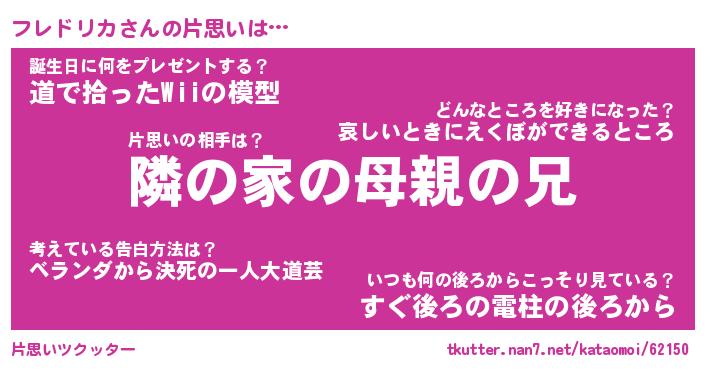 | 男性向けラノベタイトル風あだ名 | 『フレドリカの憂鬱』 |