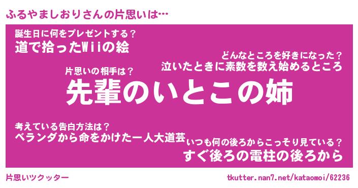 | 胡散臭い通販商品みたいなあだ名 | 『モテモテ間違いなし水晶球…その名も「ふるやましおり」』 |