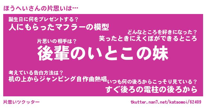 | 胡散臭い通販商品みたいなあだ名 | 『モテモテ間違いなし水晶球…その名も「ほうへい」』 |