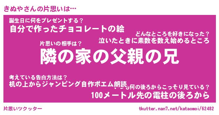 | 男性向けラノベタイトル風あだ名 | 『きぬやの憂鬱』 |