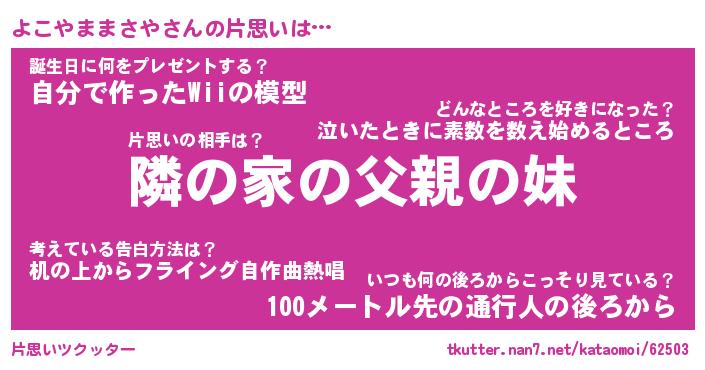 | ツイッター | よこやままさやさんのツイッターID『kikurage_idle』 |