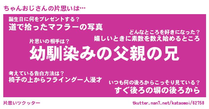 | 女子向けラノベタイトル風あだ名 | 『(仮)ちゃんおじのやんごとなき事情』 |