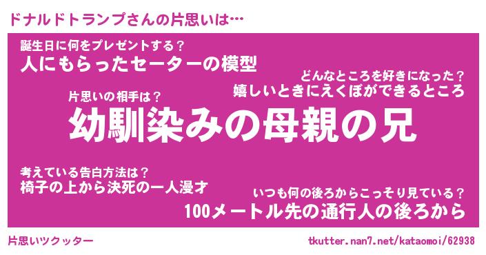 | 女子向けラノベタイトル風あだ名 | 『(仮)ドナルドトランプのやんごとなき事情』 |