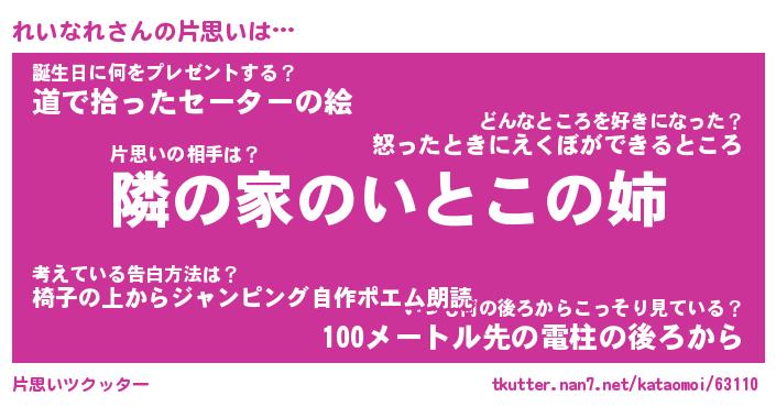| ヘコむあだ名 | 『れいもー』『牛乳』『れい太郎』 |
