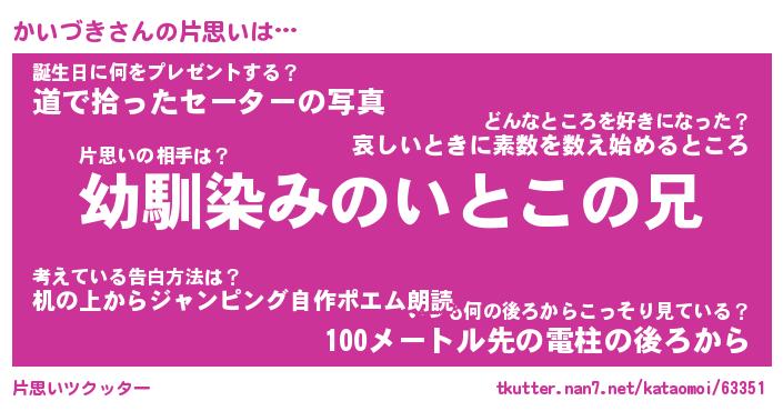| 男性向けラノベタイトル風あだ名 | 『かいづきの憂鬱』 |