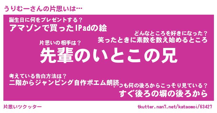 | 男性向けラノベタイトル風あだ名 | 『うりむーの憂鬱』 |