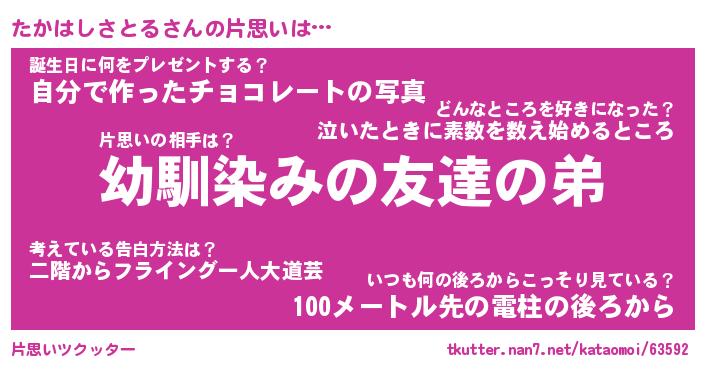 | 男性向けラノベタイトル風あだ名 | 『たかはしさとるの憂鬱』 |