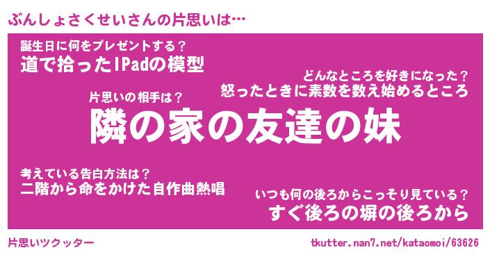 | 男性向けラノベタイトル風あだ名 | 『ぶんしょさくせいの憂鬱』 |