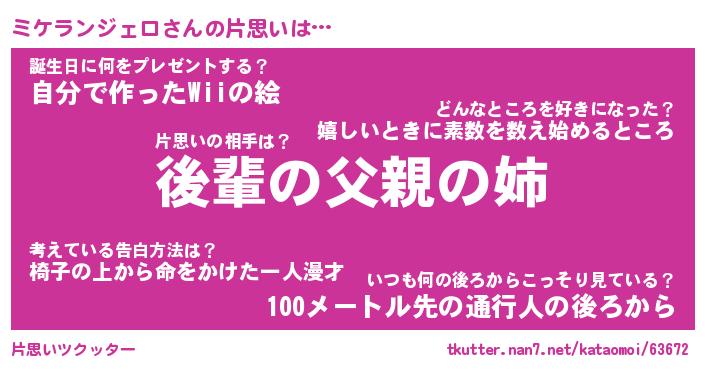 | ヘコむあだ名 | 『ミケふぇ~』『つくし』 |