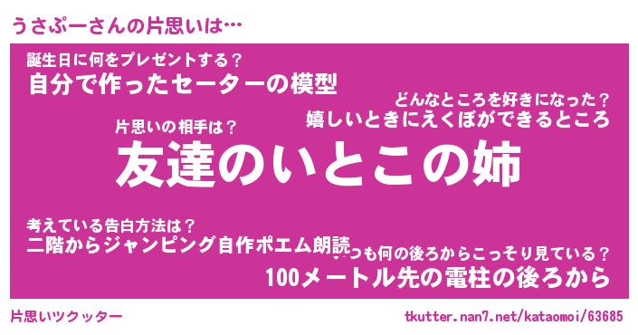 | ポケモン風あだ名 | 『ウサチュウ』『ウサプダネ』 |
