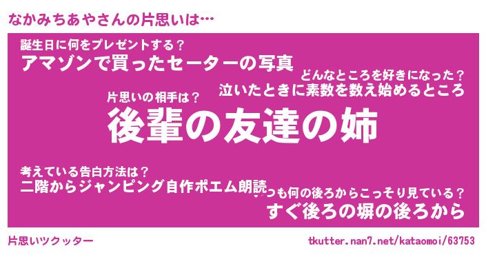 | 伝説のあだ名 | 『封印されしスナイパーなかみちあや』 |