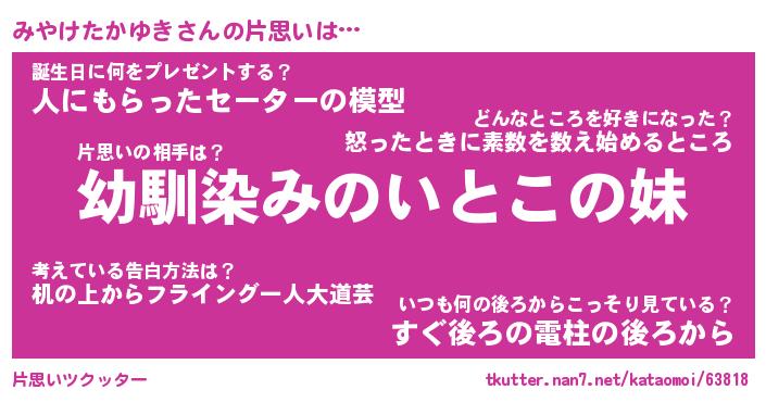 | ヘコむあだ名 | 『みやもー』『酢こんぶ』『みやお』 |