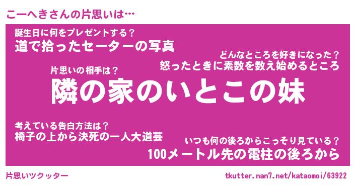 | 男性向けラノベタイトル風あだ名 | 『こーへきの憂鬱』 |