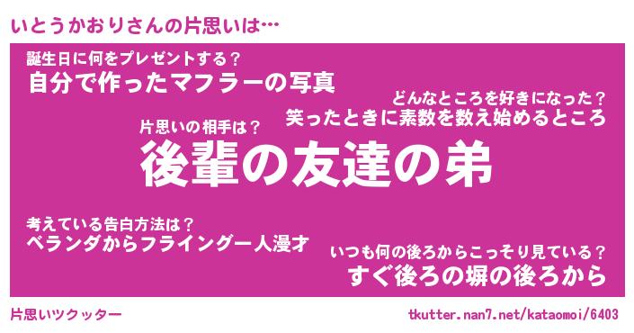 | ヘコむあだ名 | 『いとっふぃ~』『つくし』 |