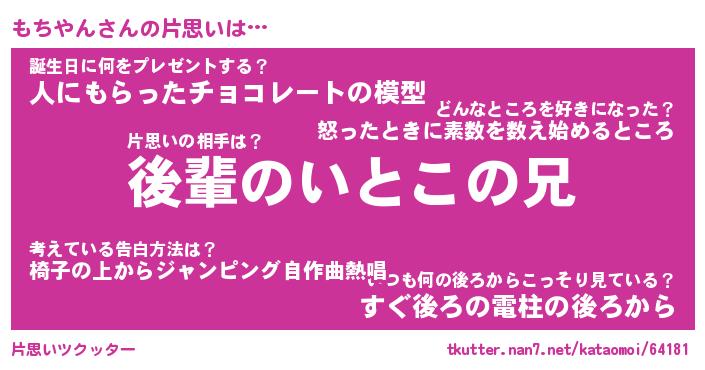 | ツイッター | もちやんさんのツイッターID『dendenmushi_idle』 |
