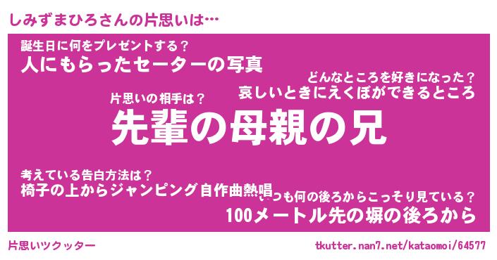 | ヒーロー風カッコイイあだ名 | 『スーパーシミズマヒロ』『暗黒騎士シミ』 |
